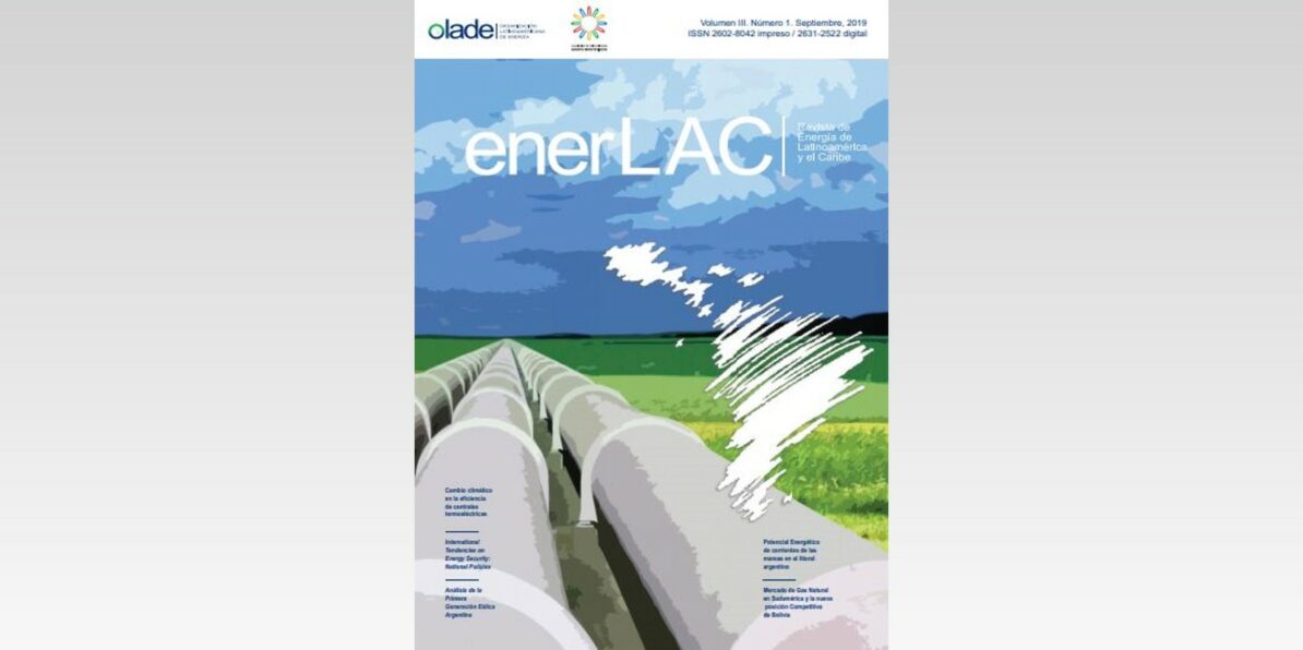 2019. La revista ENERLAC 2019, No.1 desarrolla los siguientes temas que espera sean de interés para la comunidad energética de América Latina y el Caribe: el efecto del cambio climático en la eficiencia de las centrales termoeléctricas; tendencias internacionales en seguridad energética en el sector eléctrico; análisis de las barreras que han afectado la generación eólica en Argentina; consideraciones sobre el potencial energético de corrientes de mareas en el litoral argentino; y, el mercado del gas natural en Sudamérica y la posición competitiva de Bolivia.